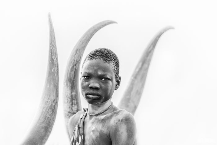 Foto karya Trevor Cole dari Irlandia yang berjudul 'Mundari Boy' memenangkan juara ketiga kontes fotografi hitam dan putih untuk kategori documentary & street. Istimewa/Dok. Boredpanda.