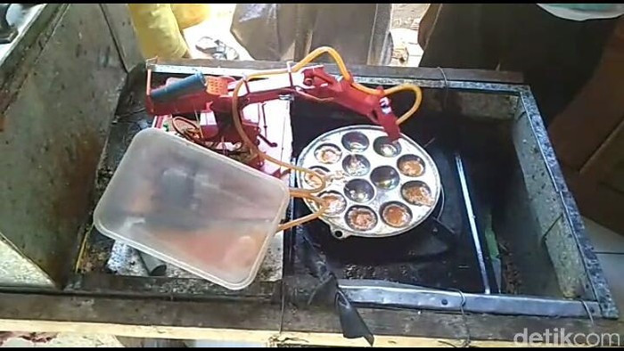 Sayang ibu menjadi motivasi Agung merancang robot pembuat telur dadar mini. Dia tak tega melihat ibunya memasak dekat loyang panas (Rinto Heksantoro/detikcom)