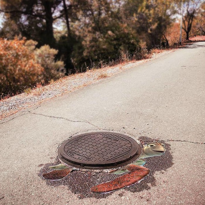 Ia menggunakan karya seni untuk memperbaiki pemandangan kota yang jelek seperti dinding beton yang retak, pipa yang rusak, dan lain-lain. Foto: Instagram/efixworld