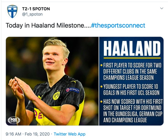 Ini beberapa statistik dahsyat Haaland. Ia pemain pertama mencetak gol di dua klub berbeda di Liga Champion dalam musim yang sama. Juga pemai termuda mencetak 10 gol di musim pertama Liga Champion. Foto: istimewa