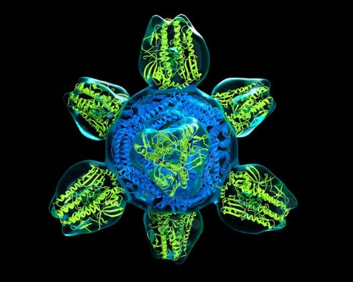Bagian yang berwarna adalah struktur prototype untuk vaksin flu universal. Foto: NIAID via Weather.com