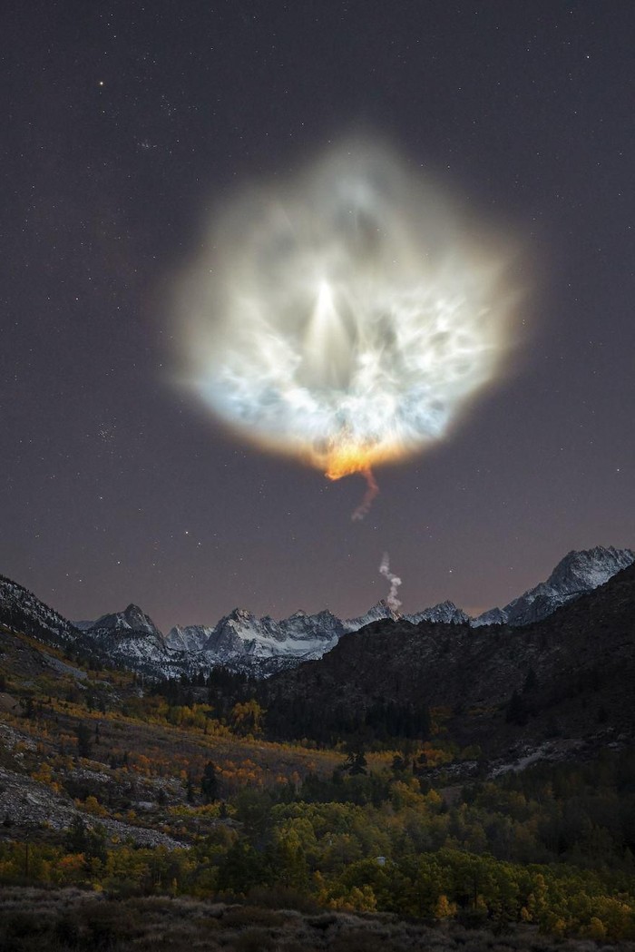 Kategori Heavenly Cloud Award dimenangkan oleh Brandon Yoshizawa dari Amerika Serikat. Karyanya menangkap asap yang ditinggalkan oleh roket SpaceX saat meluncur dari Sierra Nevada, California. Foto: International Landscape Photographer of the Year