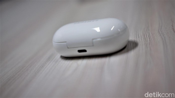 Case ini menyuplai hingga 11 jam penggunaan. Bila ditotalΒ Galaxy Buds Plus bisa digunakan 22 jam. Foto: Adi Fida Rahman/detikINET Β