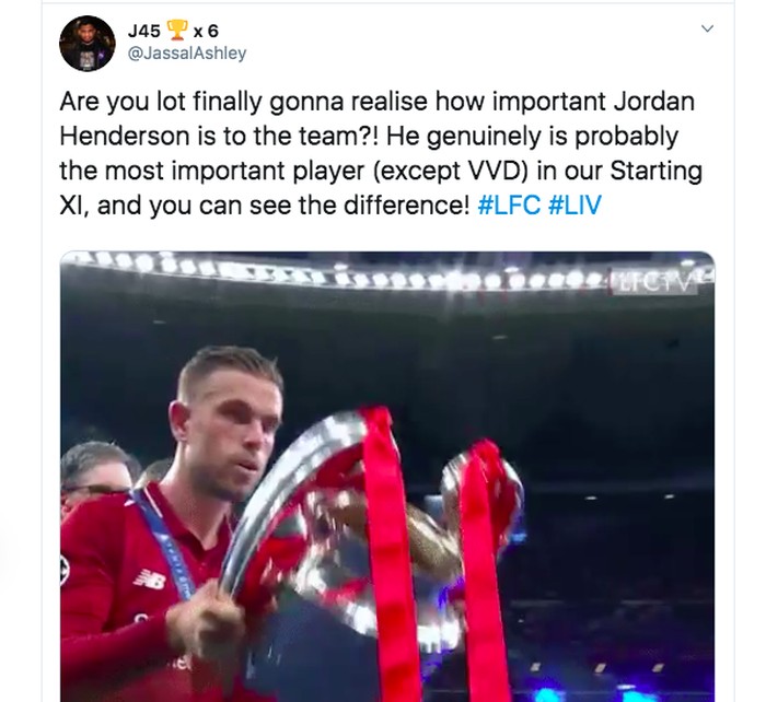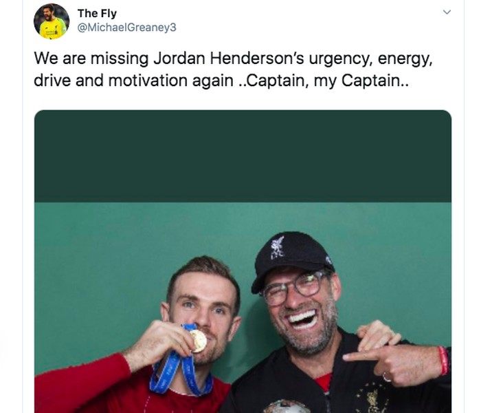 "Jangan pernah lagi mengkritik apa yang diberikan Jordan Henderson bagi tim ini," tulis netizen ini. Foto: istimewa