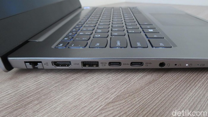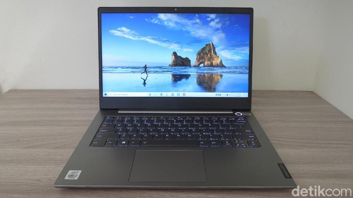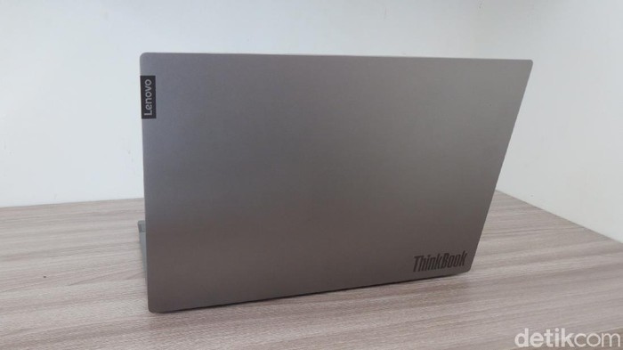 Warna mineral grey ini kelihatan lebih keren ketika kena cahaya alami, menampilkan kesan modern minimalis, premium dan berkelas. ThinkBook 14 ini punya kapasitas memori 8 GB DDR4, chipset grafis Radeon 625 2GB, kapasitas penyimpana 2 TB. Lancar untuk kerja multitasking (Fitraya Ramadhanny/detikcom)