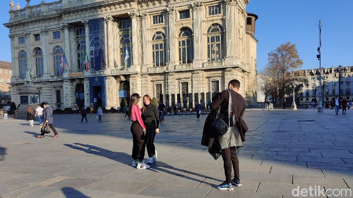 Suasana di Piazza Castello Kota Turin, Italia. Warna-warnanya muncul dengan kuat (Fitraya Ramadhanny/detikcom)