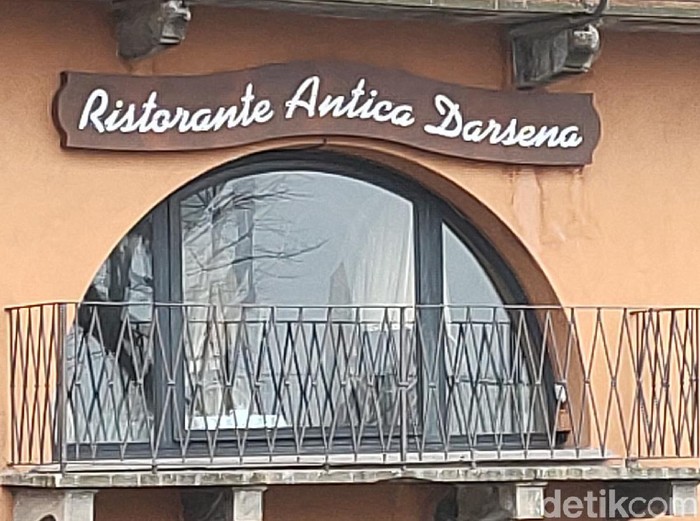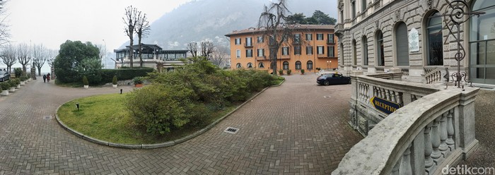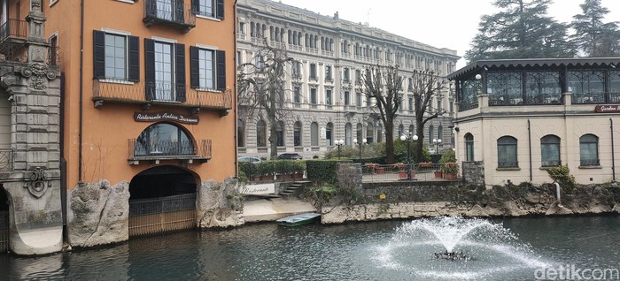 Restoran di tepi kolam air mancur di Como, Italia dengan wide angle (Fitraya Ramadhanny/detikcom)