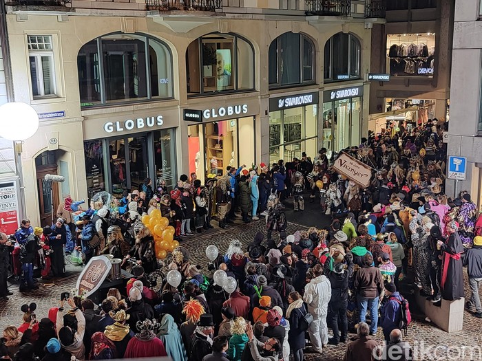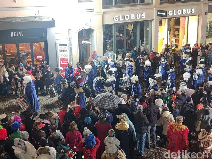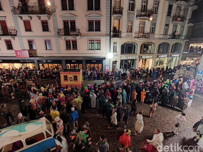 Foto malam hari seperti Festival Fastnacht di Luzern, Swiss tidak usah khawatir (Fitraya Ramadhanny/detikcom)