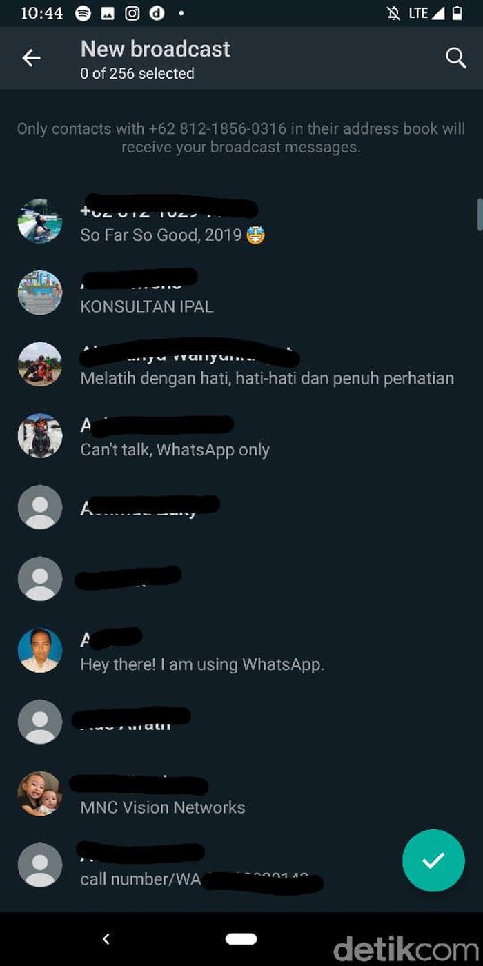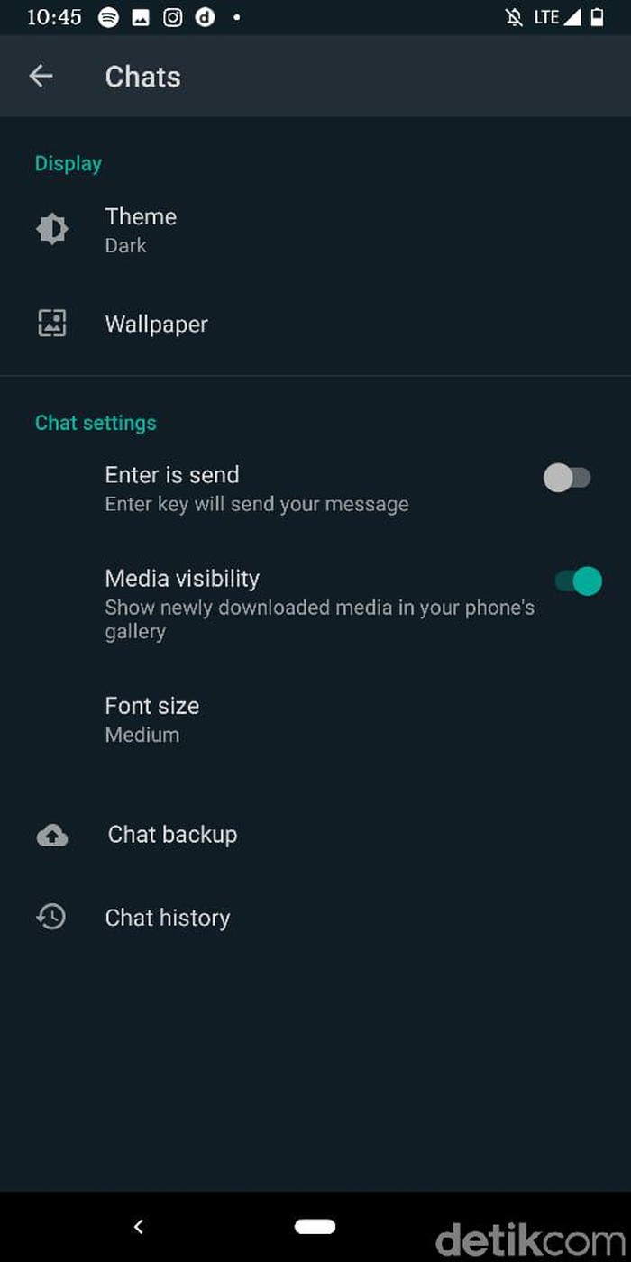 Seperti inilah wujud dari WhatsApp bila kalian mengaktifkan dark mode atau mode gelap. Foto: detikINET/Agus Tri Haryanto