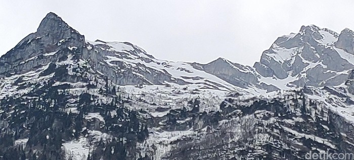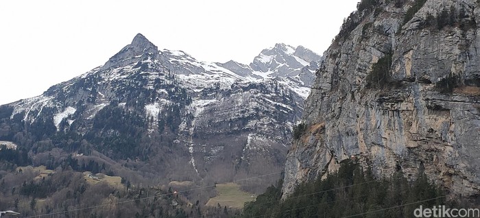 Pegunungan Alpen di Swiss yang tetap jelas dipotret dari kejauhan. Inilah hasil jepretan 13MP periscope zoom lens dengan 5X hybrid zoom (Fitraya Ramadhanny/detikcom)