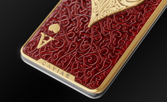 Di bagian belakang ponsel terdapat ornamen dari emas asli yang bentuknya terinspirasi dari kartu remi seperti hati, berlian, keriting, sekop dan Joker. Foto: Caviar