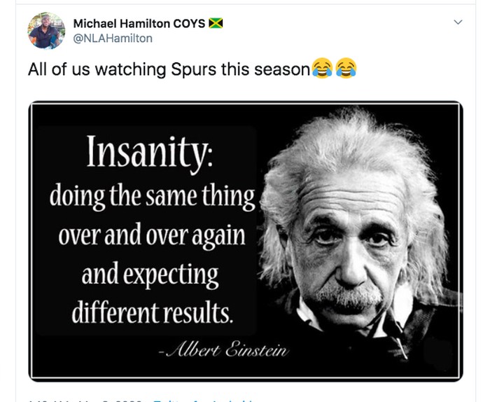 Netizen ini menyelipkan quote Albert Einstein bahwa adalah kegilaan melakukan hal yang sama terus menerus dan mengharapkan hasil yang berbeda. Foto: istimewa
