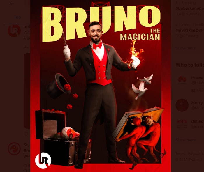 Bruno Fernandes pun banyak dipuji. Di sini, heat mapnya digambarkan sebagai kambing atau Goat, kependekan dari Greatest of All Time. Foto: istimewa