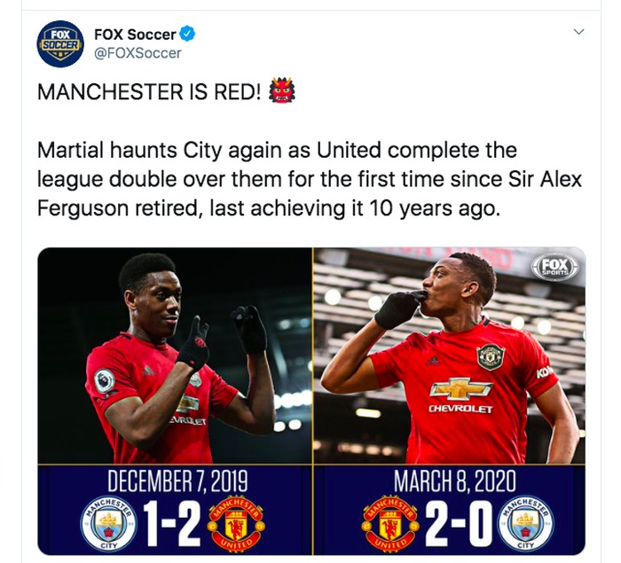 Kekalahan City di Liga Inggris dari United musim ini. Foto: istimewa