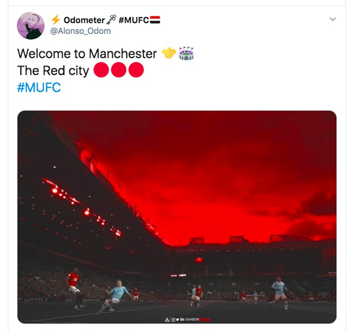 Selamat datang di langit merah Manchester. Foto: istimewa