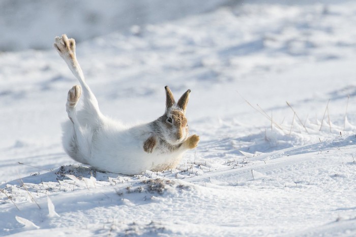 Juara kedua Mammal Photographer of the Year: Rolling Mountain Hare oleh Kate MacRae. Foto: Kate MacRae/Mammal Photographer of the Year