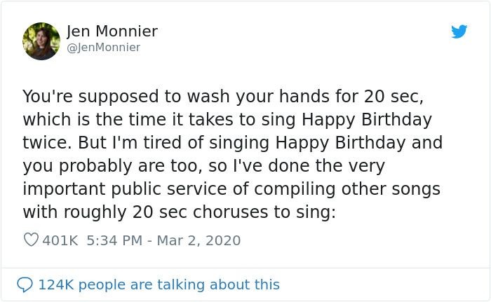 Nah sekian rekomendasi lagu yang bisa menemani kamu cuci tangan, kalau detikers ada saran lain boleh berbagi loh di kolom komentar. Foto: Twitter via Bored Panda