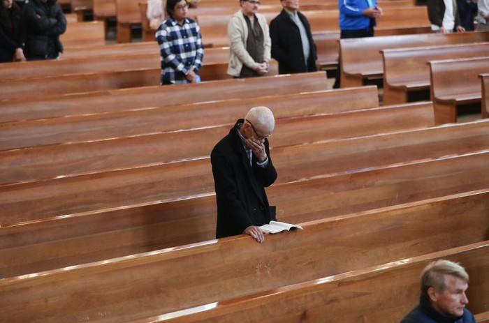 Jemaat menghadiri Misa Minggu di Cathedral of Our Lady of the Angels pada 15 Maret 2020 di Los Angeles, California. Foto: Getty Images