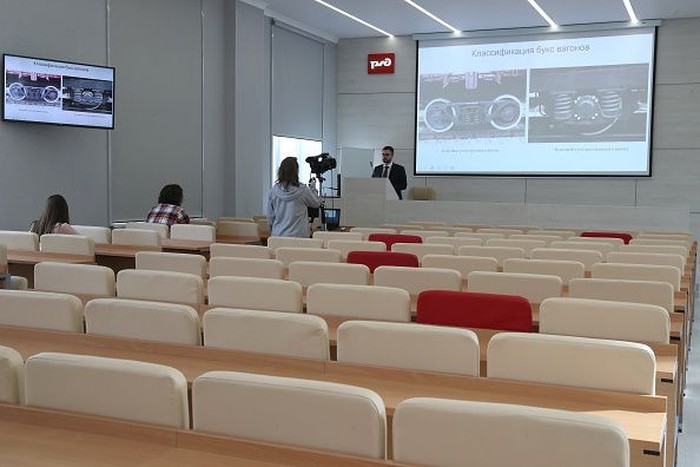 Dosen di Russian University of Transport merekam materi perkuliahan untuk para mahasiswanya,
