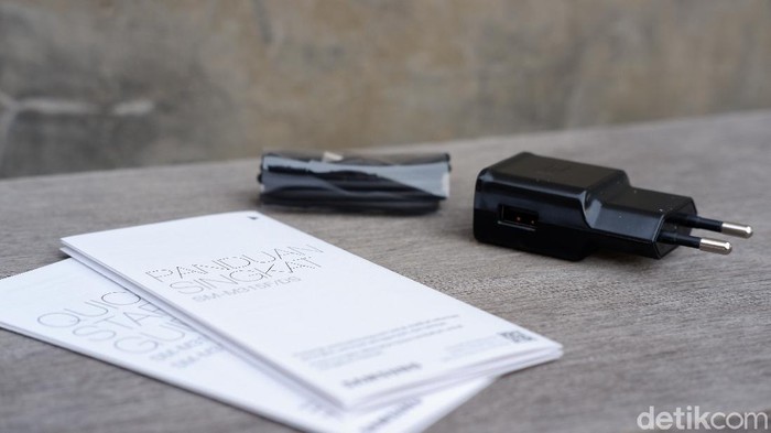 Aksesori yang disertakan dalam kotak penjualan berupa charger, kabel data USB Type C dan buku petunjuk. Foto: Adi Fida Rahman/detikINET