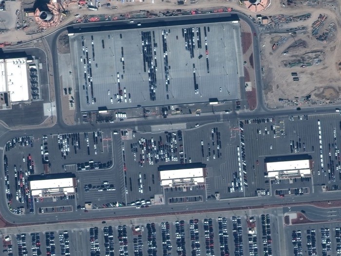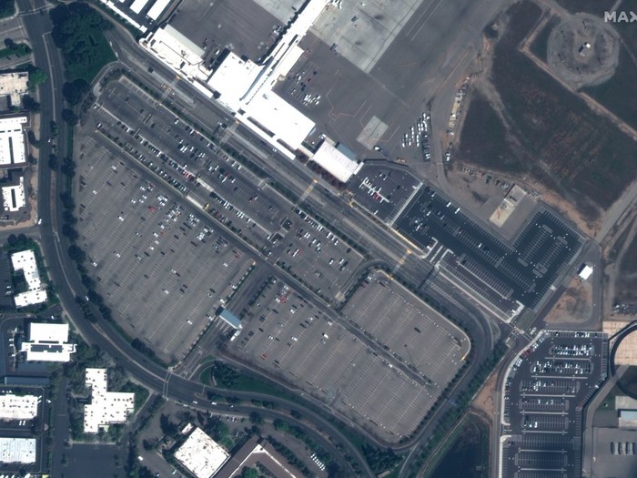 Area tempat parkir kendaraan di Bandara Internasional Fresno Yosemite di California, 20 Maret 2020. Foto: Maxar Technologies