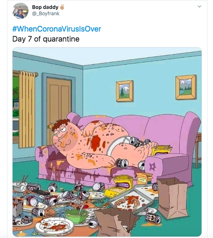 Kalau warganet ini sepertinya belum tahu mau melakukan apa karena menjadi gendut semasa karantina. Foto: Twitter