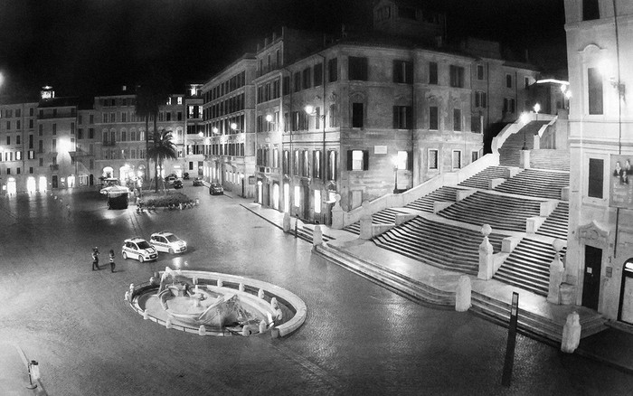 Dua polisi patroli di depan Spanish Steps yang sepi. Roma, Italia. Foto: Milan Radisics via behance