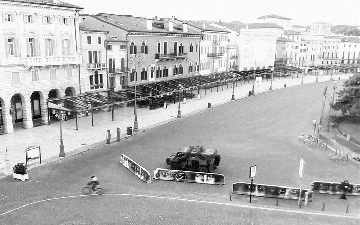 Seorang pengendara sepeda melintasi salah satu tempat favorit orang Verona dan wisatawan untuk bertemu dan berjalan. Foto: Milan Radisics via behance