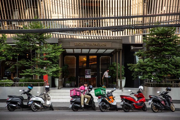 Karena banyaknya tempat makan yang tutup, aplikasi pengiriman makanan restoran seperti Grab Food dan Food Panda jadi semakin populer dna banyak peminatnya di Thailand.