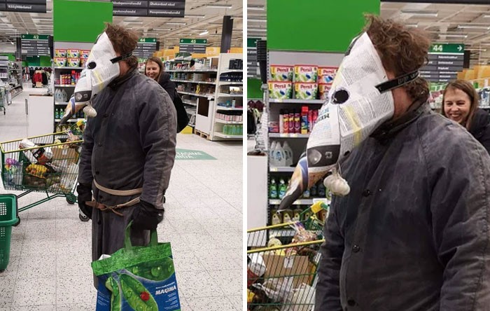 Menurutnya ini APD yang tepat untuk belanja ke Walmart. Kostumnya bertema wabah Black Death (Istimewa/Dok. Boredpanda)