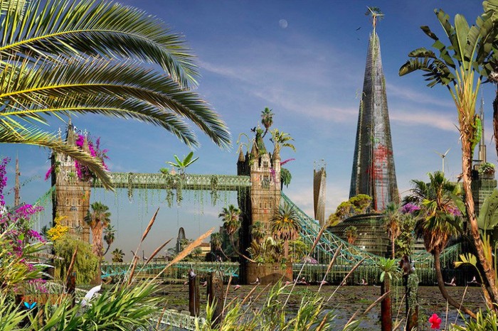 London menjadi rawa besar. Bayangkan, Tower Bridge tanpa turis, hanyaΒ ada katak. Foto: via Brainberries