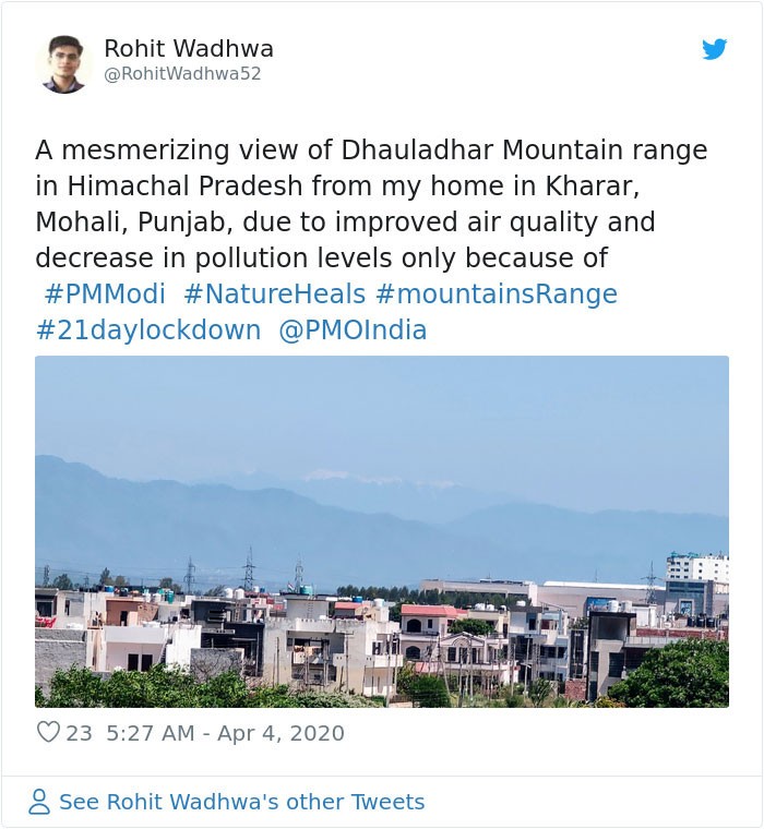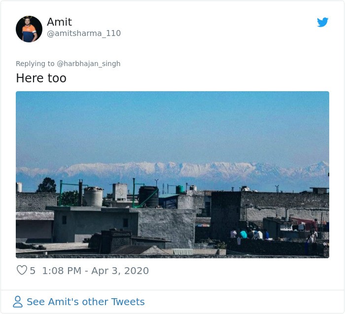 Banyak di antara warga yang membagikan foto menyebutkan, ini pertama kalinya mereka bisa menyaksikan Himalaya dari rumah.Β Foto: via Bored Panda