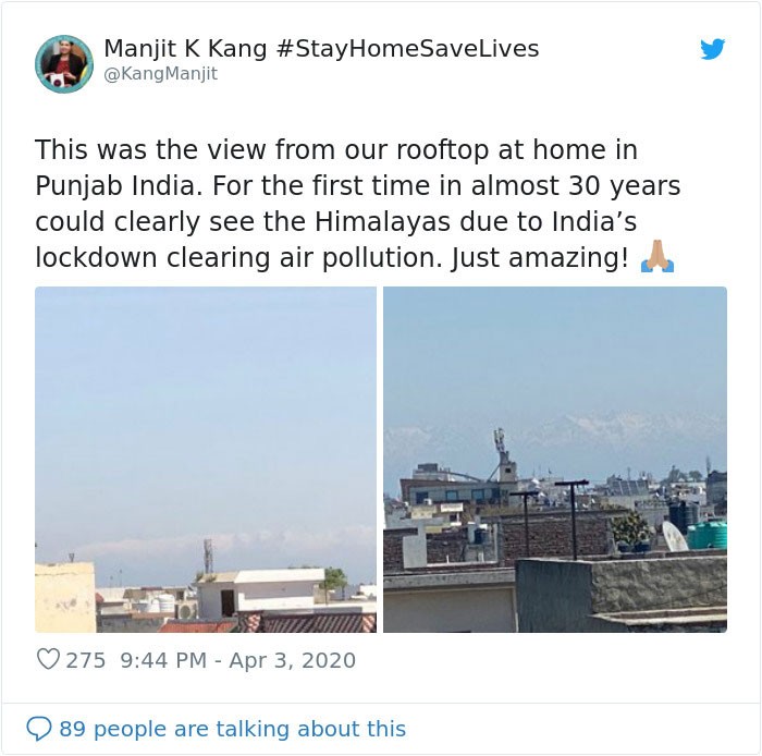 Netizen pun memuji dampak positif dari pandemi corona terhadap tingkat polusi udara di India.Β Foto: via Bored Panda