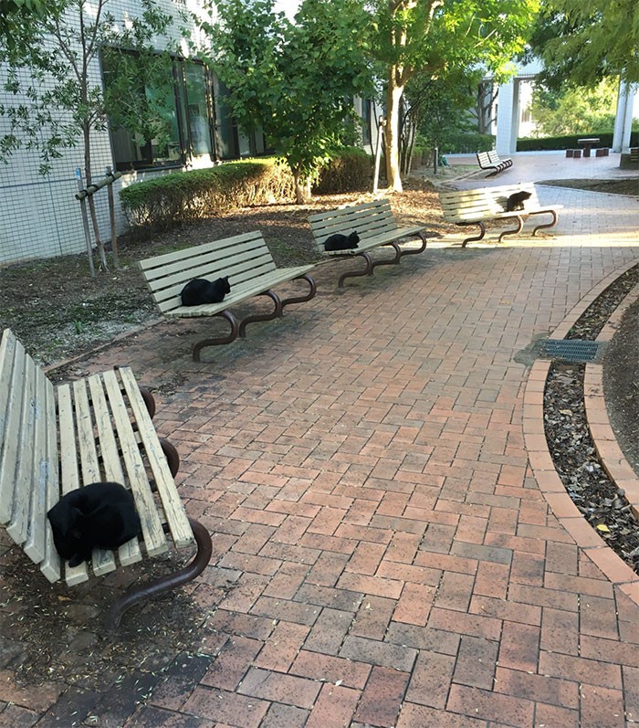 Satu bangku untuk satu kucing. (Foto: Boredpanda)