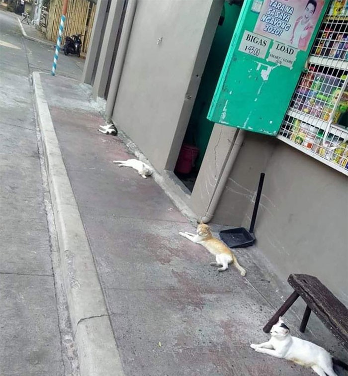 Para kucing sedang istirahat pun berjaga jarak. (Foto: Boredpanda)