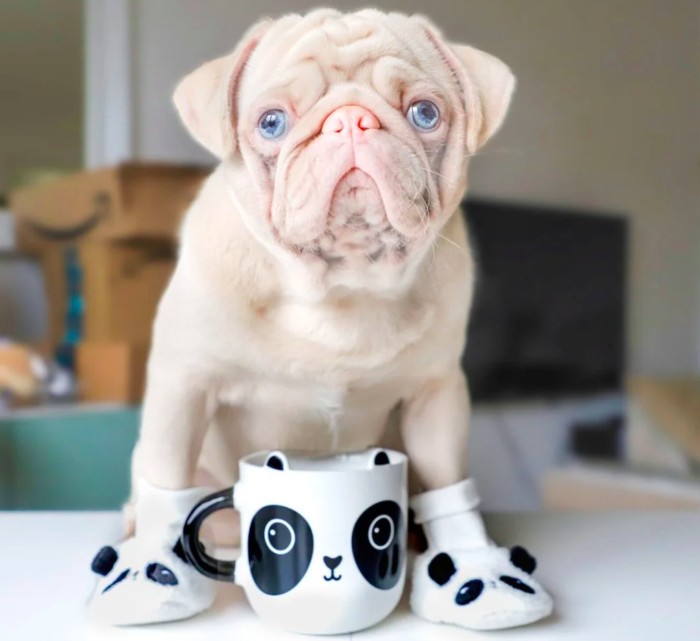 Pencinta anjing dari berbagai negara mengikuti Milkshake di Instagram, untuk melihat bermacam kelucuan dan tingkah menggemaskan anjing itu. Foto: Instagram @milkshakethepug via Brainberries