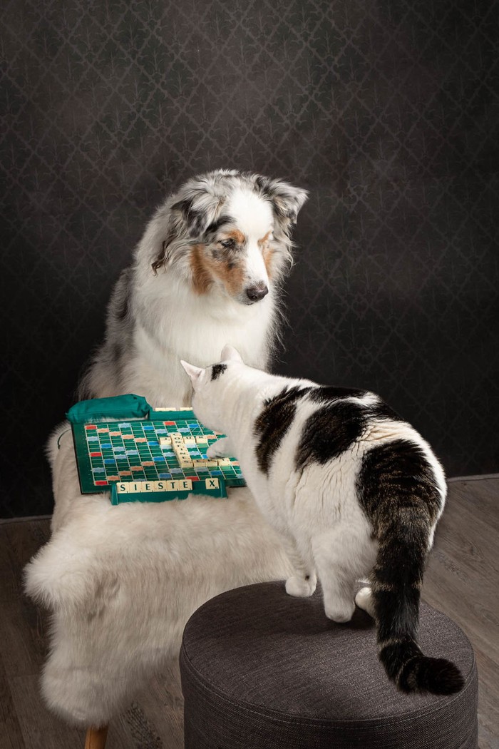 Kucing dan anjing ini melakukan berbagai kegiatan lucu (Foto: Juliette Bercovici)