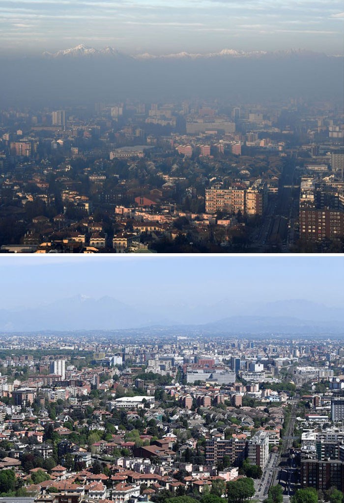 Menurut BBC, pada tahun 2008 kota Milan, Italia dinobatkan sebagai kota paling tercemat dan kabut asap yang tebal. Sejak lockdown kini polusi turun drastis. (Foto: Boredpanda)