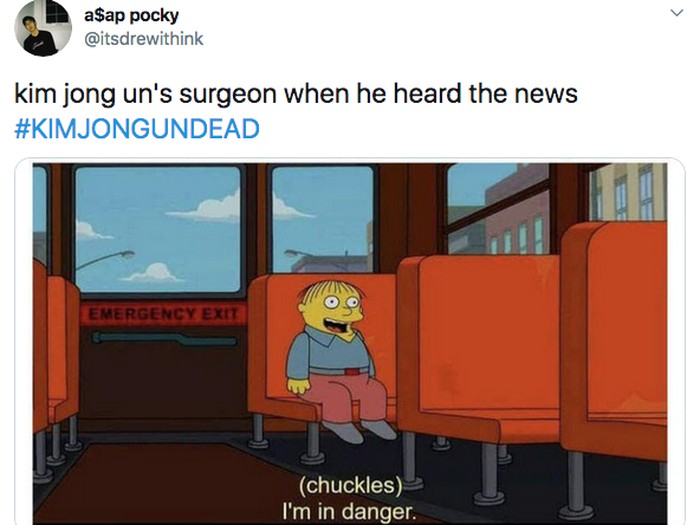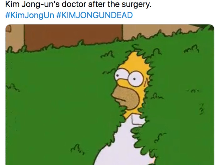 Kalau sampai Kim Jong Un benar meninggal dunia, dokternya pasti jadi pihak yang dianggap bertanggung jawab. Rasanya ingin menghilang seperti Homer Simpson (Twitter)