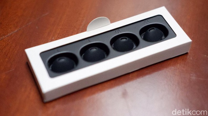 Tidak ketinggalan eartips berukuran besar dan kecil untuk disesuikan dengan pengguna.Β Foto: Adi Fida Rahman/detikINET