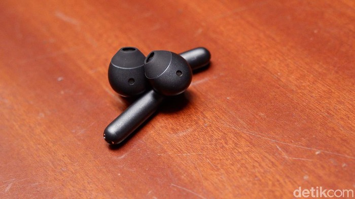 Enco Free memiliki tip silikon yang memudahkan penyesuaian dan kenyamanan saat digunakan di telinga. Foto: Adi Fida Rahman/detikINET