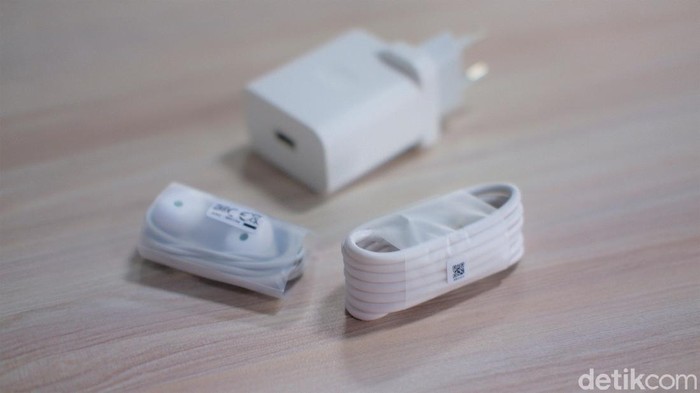 Charger, kabel data USB Type C dan earphone turut diberikan. Foto: Adi Fida Rahman/detikINET