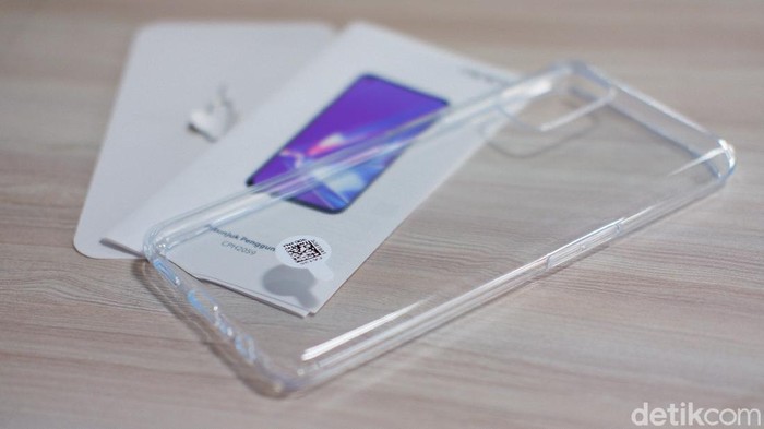 Seperti perangkat Oppo lainnya disertakan case silikon transparan, buku petunjuk dan jarum pembuka SIM Card tray. Foto: Adi Fida Rahman/detikINET