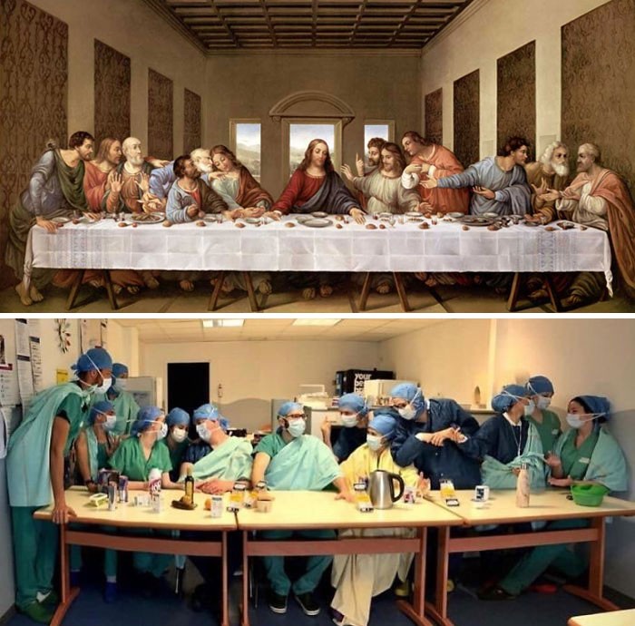Karena mereka harus bekerja dari rumah sejakΒ 13 Maret, mereka punya ide untuk menciptakan kembali sebuah lukisan terkenal dengan menggunakan 3 produk yang tergeletak di rumah. Bored Panda/Fotomitos