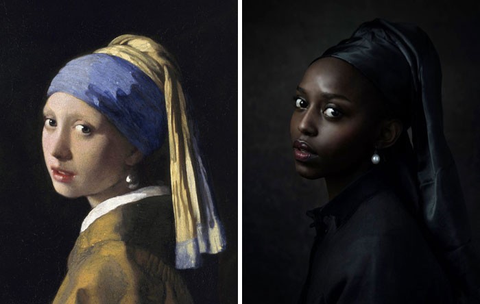 Karyanya dimulai dengan foto yang menampilkan remake dari "Girl With a Pearl Earring" karya Vermeer. Bored Panda/Maria Rosenblatt