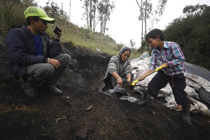 Nubia Rocio Gaona menunjukkan bagaimana cara menanam bibit di kebun kecilnya yang berada di kawasan Chipaque, Kolombia.