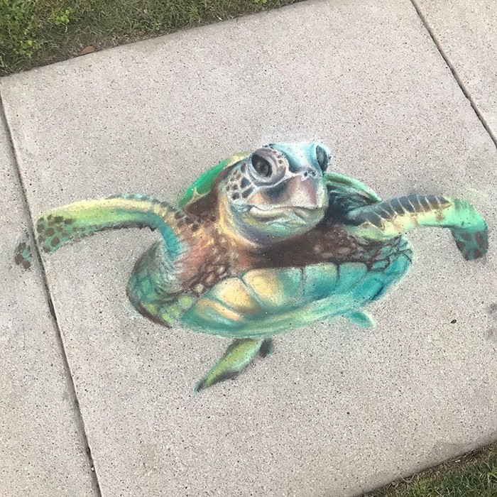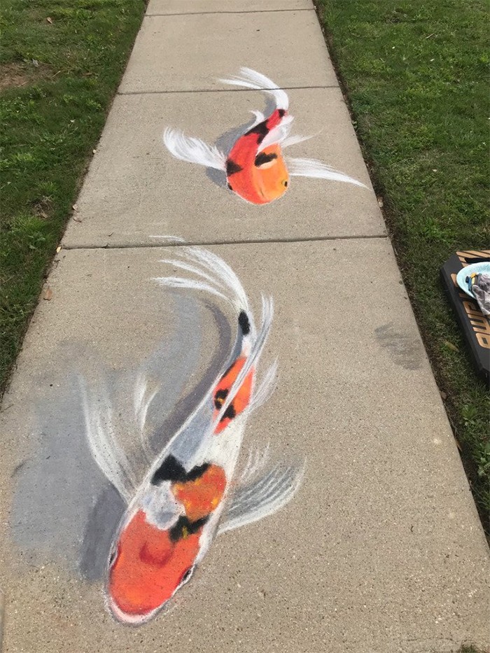 Tetangga mereka ternyata sangat sangat menyukainya sehingga karya mereka tak berhenti pada ikan koi 3D saja yang merupakan gambar pertama mereka. Foto: Instagram/@janrigginsart