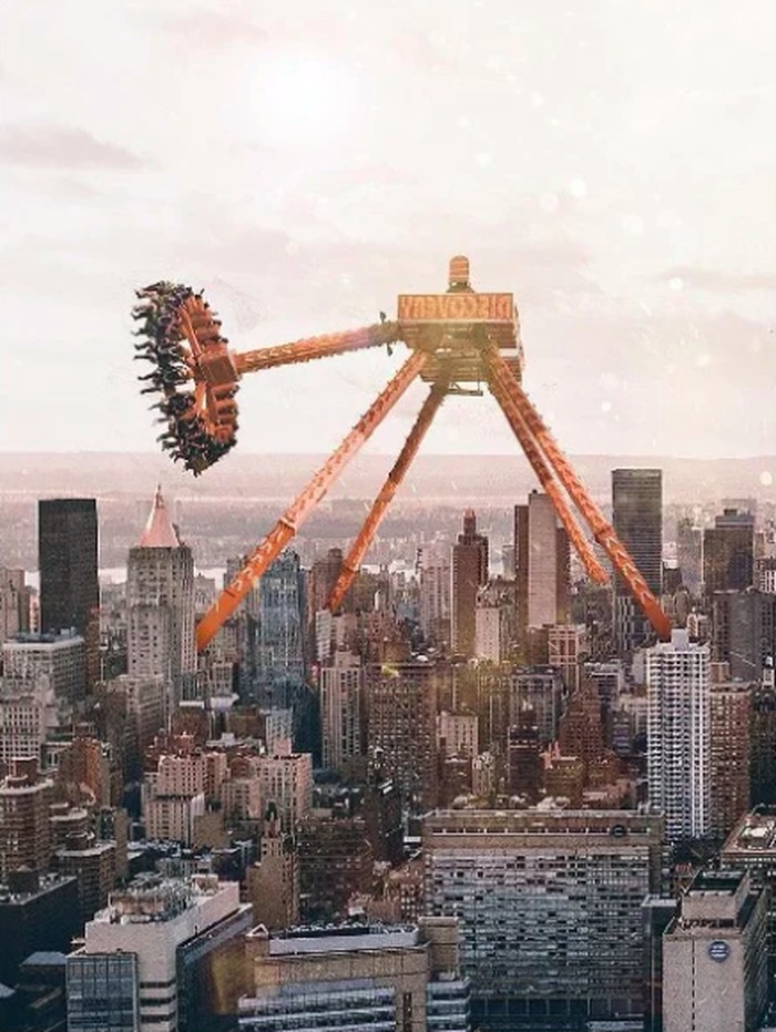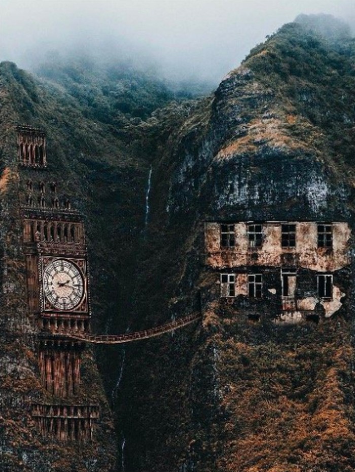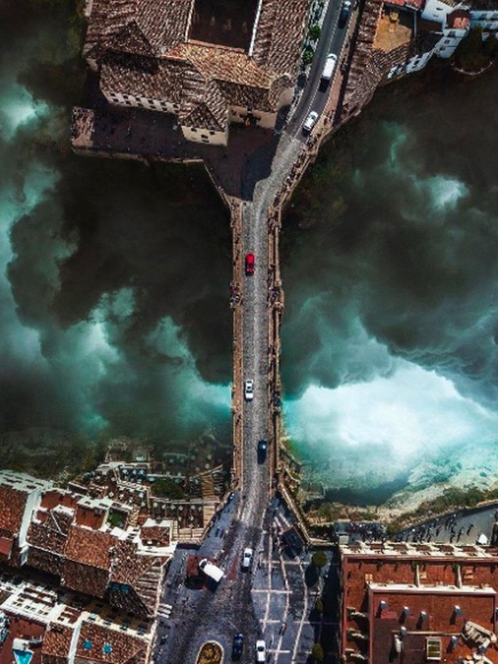 Contohnya foto yang satu ini, HΓΌseyin menggabungkan foto tebing dan jurang dengan dua kota yang terpisah.Β Foto: Instagram @art.side