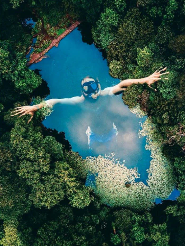 Atau yang ini, raksasa yang asyik berenang di danau di tengah hutan. Unik kan? Foto: Instagram @art.side