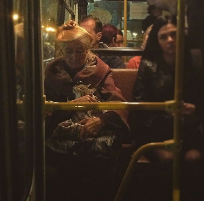 Pria di dalam bus ini terlihat penuh cinta memandang kucingnya. (Foto: Boredpanda)